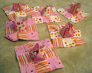 Restore the newly seamed squares back to their rightful place inside the cube and check to make sure you did it correctly. If all is well, then proceed to the next two squares. If you somehow seamed the wrong two squares together and the structure is now all wonky - no worries! Just get out your seam ripper and start again.